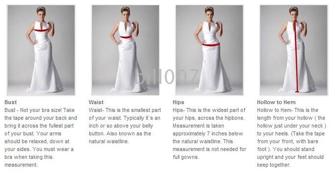 Please follow the measurement instructions, and measure yourself carefully. After you pay for me ,please tell me your exact measurement ( Bust .Waist .Hips .Shoulder to Waist .Outer Leg .Shoulder to Shoulder . Stature/Height ) in 24 hours ,so that you can receive the dress quickly !If you need any other color or special requirement, please contact me by email and I will take care of your request personally.