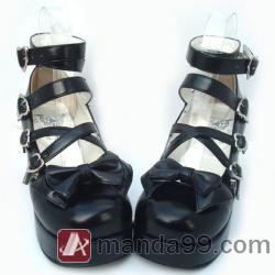 Amanda99 7.5cm Heel With 3cm Platform Black bow decoration Lolita Shoes |