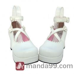 Amanda99 7.5cm Heel With 3cm Platform White PU Lolita Shoes |