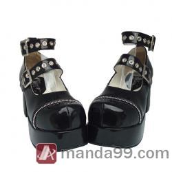 Amanda99 8cm Heel With 3.5cm Platform Black PU Lolita Shoes |