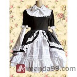 Amanda99 Black And White Bow Ruffles Lolita Dress |