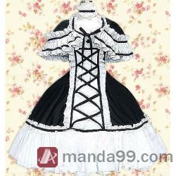 Amanda99 Black And White Lace Ruffles Cotton Lolita Dress |