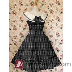 Amanda99 Black Buttons Bow Sleeveless Lolita Dress |