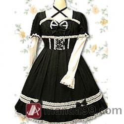 Amanda99 Black Front Ties Lace Lolita Dress |