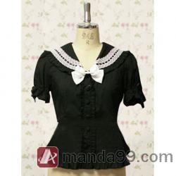 Amanda99 Black Lace Short Sleeves Lolita Cotton Blouse |