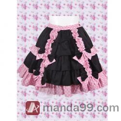 Amanda99 Black Lolita Skirt With Pink White Dot Ruffle |
