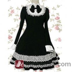 Amanda99 Black Long Sleeves Lace Applique Cotton Lolita Dress |