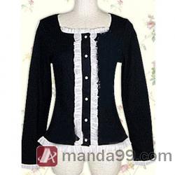 Amanda99 Black Long Sleeves White Ruffles Lolita Blouse |