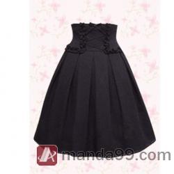 Amanda99 Black Pleated Cotton Lolita Skirt |