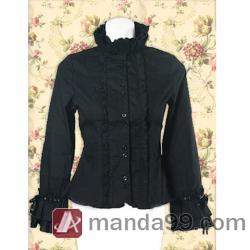 Amanda99 Black Ruffles Long Sleeves Cotton Lolita Blouse |
