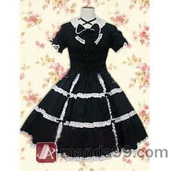 Amanda99 Black Short Sleeves Bow Lace Cotton Lolita Dress |