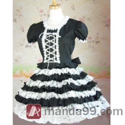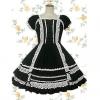 Amanda99 Black Short Sleeves Lace Ruffles Cotton Lolita Dress |