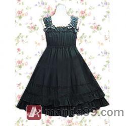 Amanda99 Black Sleeveless Bow Cotton Lolita Dress |