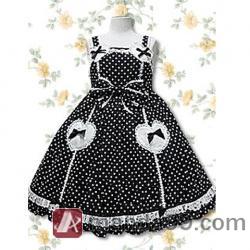 Amanda99 Black Sleeveless Lace Bow Applique Cotton Lolita Dress |