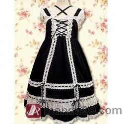 Amanda99 Black Sleeveless White Lace Lolita Dress |