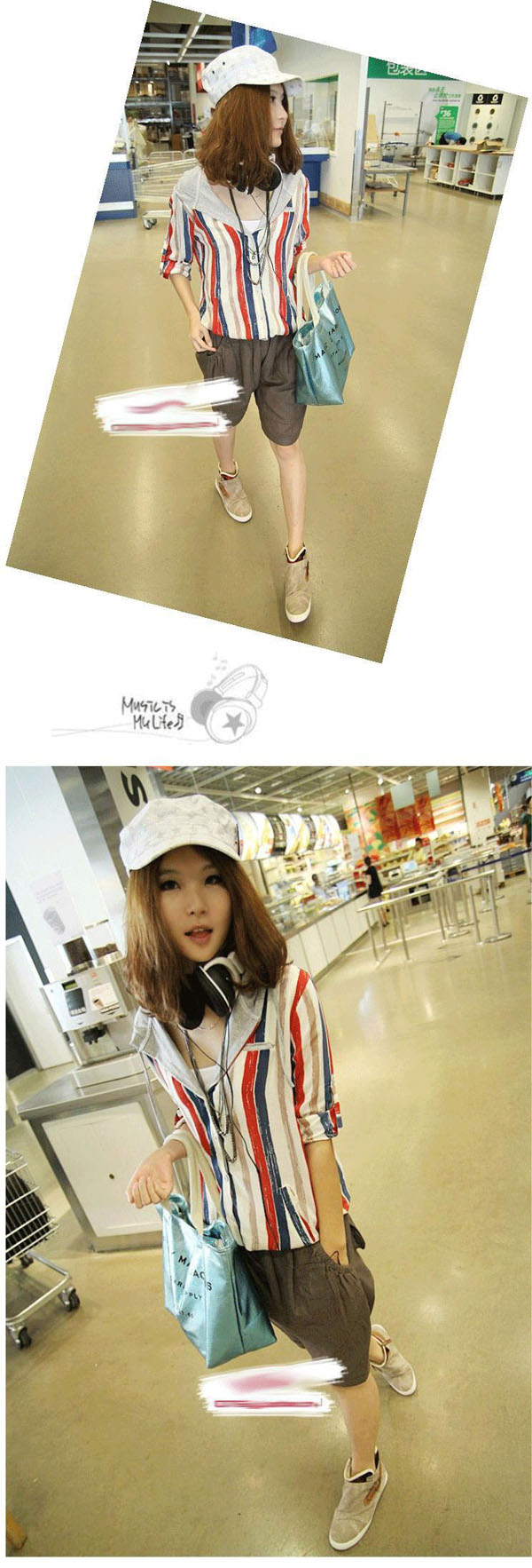 Amanda99 Campus Style Cotton High Quality Upright Stripe Long Sleeve Shirt |
