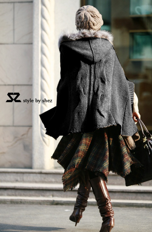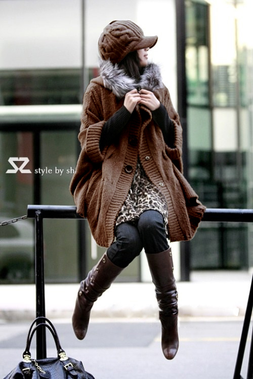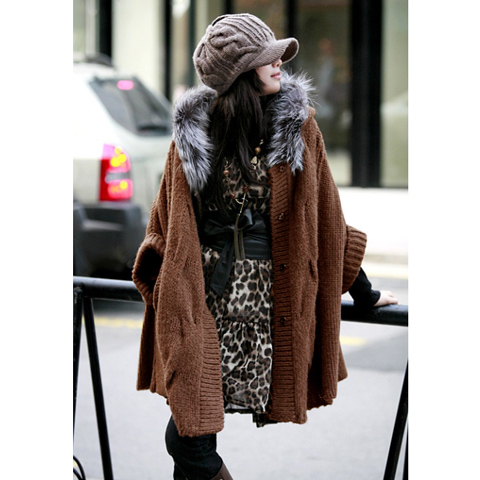 Amanda99 Comfortable and Leisure Shearling Bat-Wing Sleeves Woolen Yarn Hood Coat For Women |