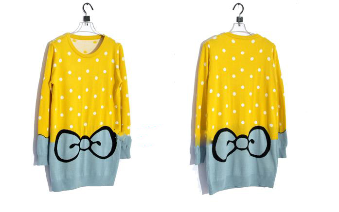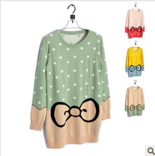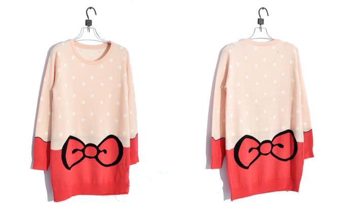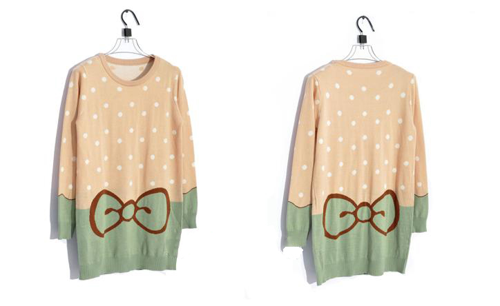 Amanda99 Corean Gentle Style Dot Pattern Embellished Meduim Pattern Sweater For Woman/Girl |