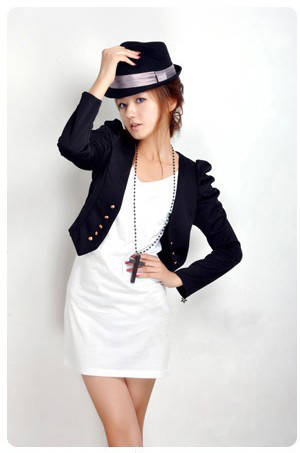 Amanda99 Corean Slim Puff-sleeve Short Pattern Long Sleeve Western-style Coat |