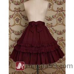 Amanda99 Cotton Deep Red Polka Lace Ruffled Bottom Lolita Skirt |