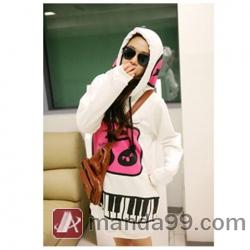 Amanda99 Cute and Charming Mix Match Music Topic Patterns Long Sleeves Blouse For Women |