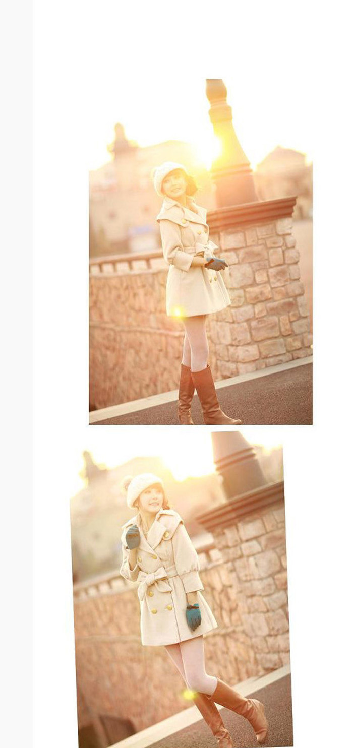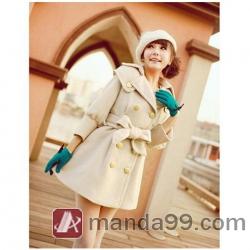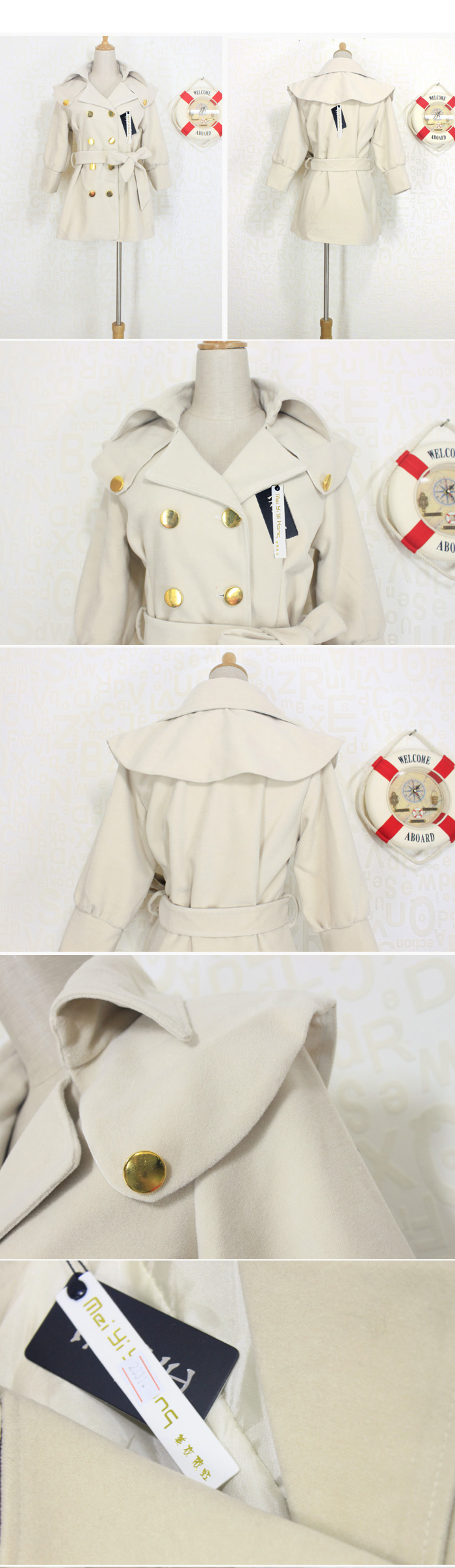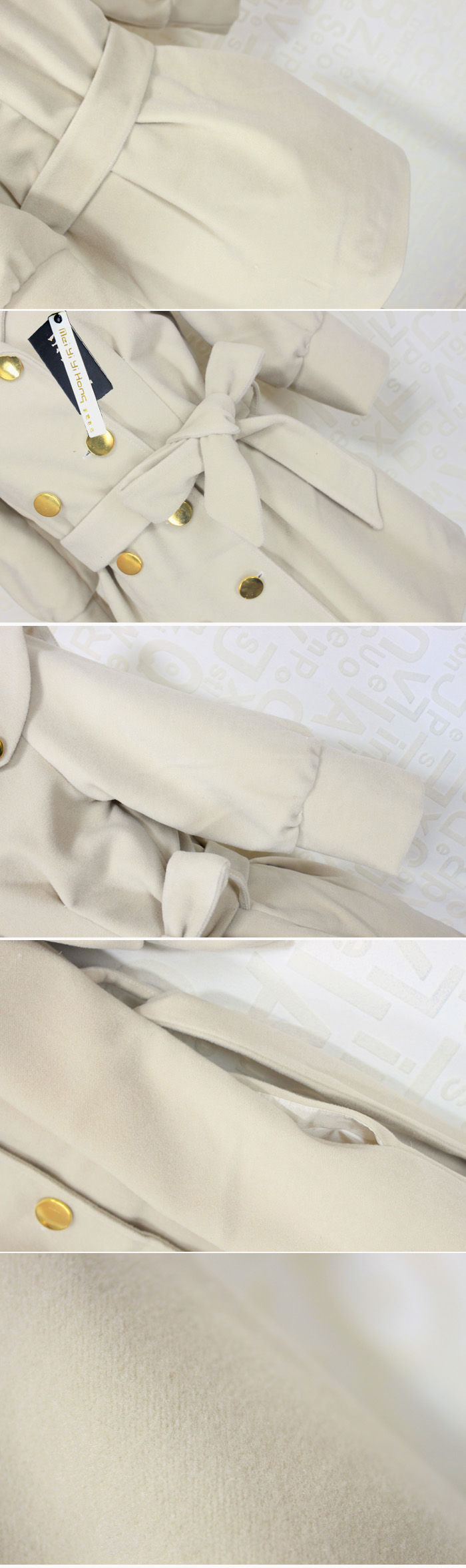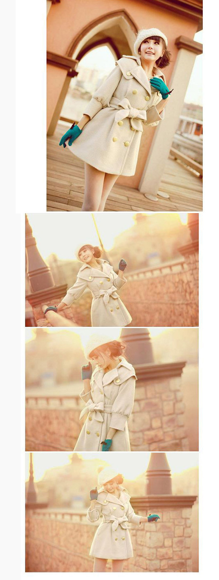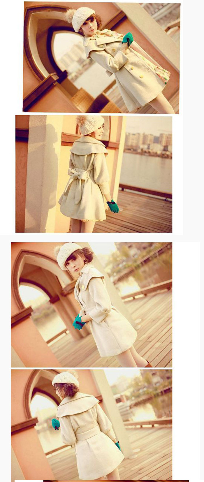 Amanda99 Cute and Elegant Wide Lapel Golden Double-Breasted Lace-Up White Long Sleeves Fleeces Coat For Women |