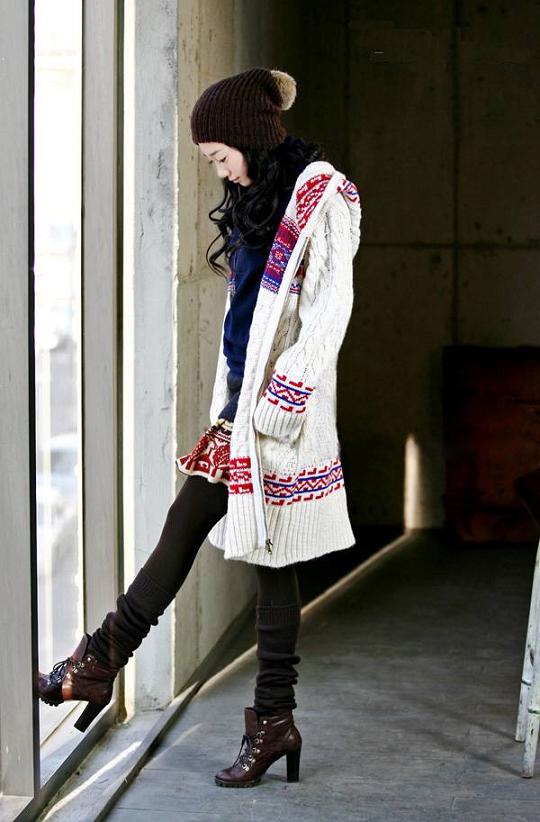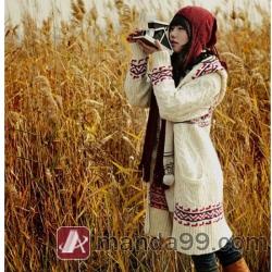 Amanda99 Elegant and Charming Zipper National Stripes Thicken Woolen Yarn Coat For Women |