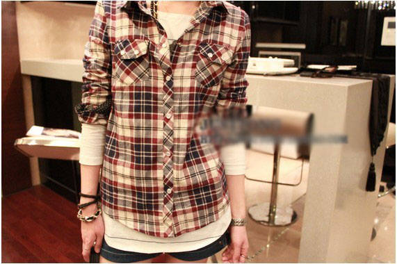 Amanda99 European Fashion Style Plaid Decent Long Sleeve Shirt For Female |