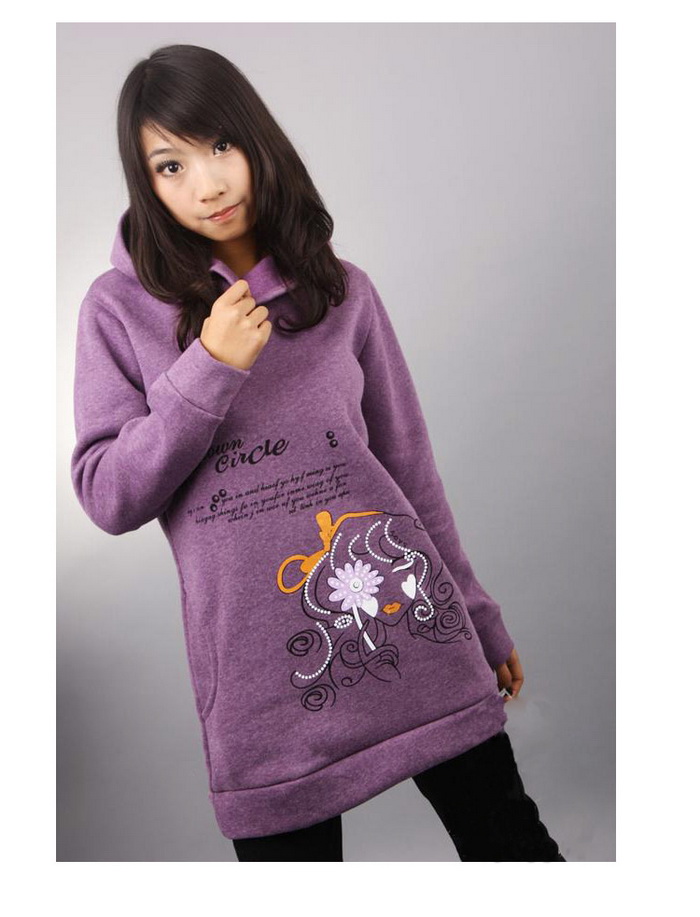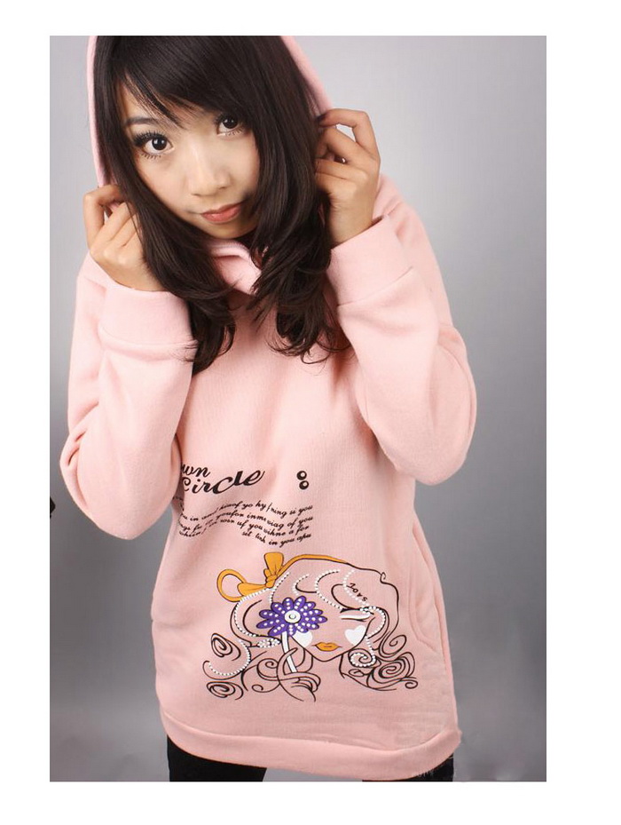 Amanda99 Exquisite Girl Letter Patterns Long Sleeves Hood Blouse For Women |