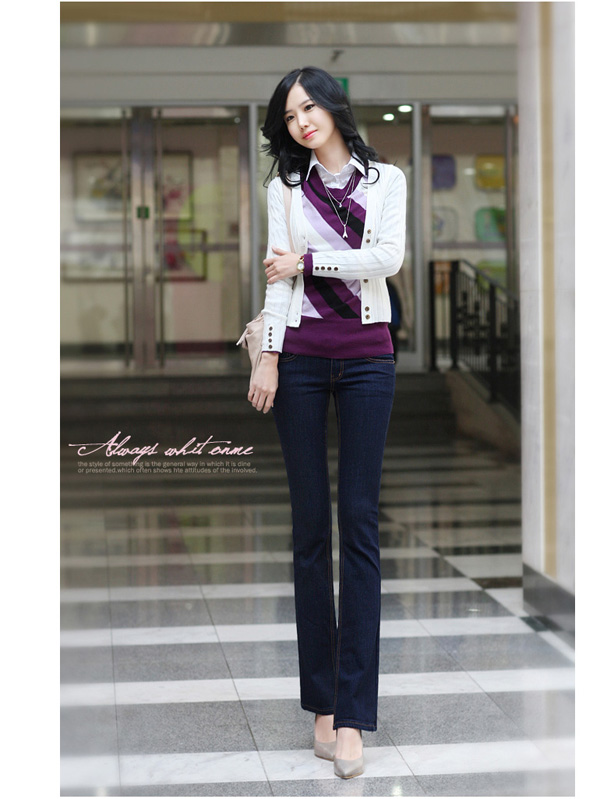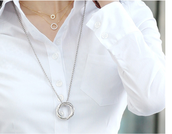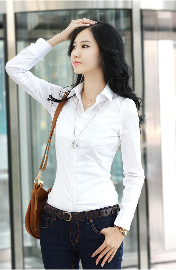 Amanda99 Laconic and Mix-Matched White Cotton V-Neckline Shirt For Female |