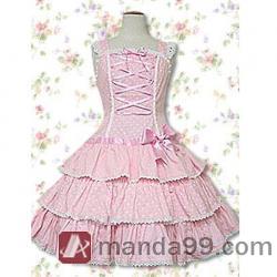 Amanda99 Pink Lace Front Ties Bow Lolita Dress |