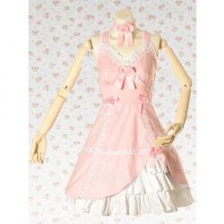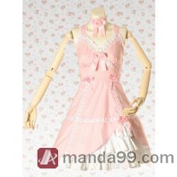 Amanda99 Pink Lace V-Neck Bow Cotton Lolita Dress |
