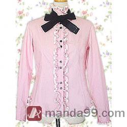Amanda99 Pink Long Sleeves Bow Ruffles Cotton Lolita Blouse |