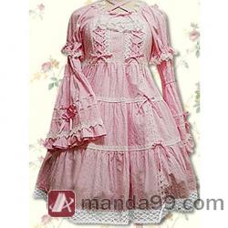 Amanda99 Pink Long Sleeves Lace Cotton Lolita Dress |