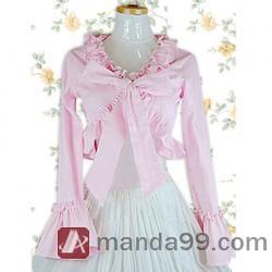 Amanda99 Pink Long Sleeves Ruffles Cotton Lolita Blouse |