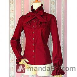 Amanda99 Red Long Sleeves Bow Cotton Lolita Blouse |