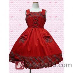 Amanda99 Red Shepherd Check Sleeveless Lolita Dress |