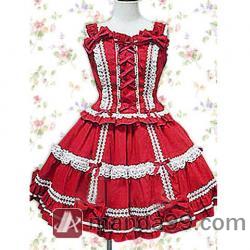 Amanda99 Red Sleeveless Front Lace Tie Lolita Top And Lace Skirt |