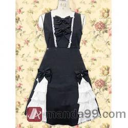 Amanda99 Sleeveless Black And White Bow Ruffles Cotton Lolita |