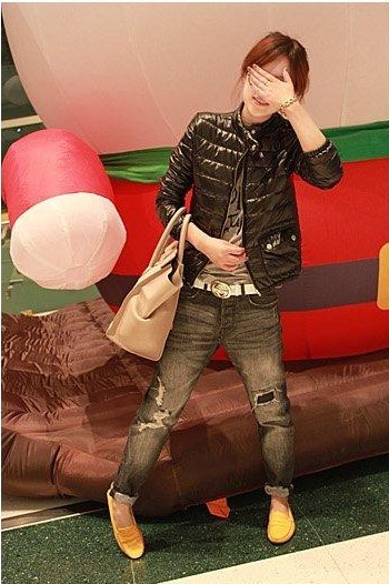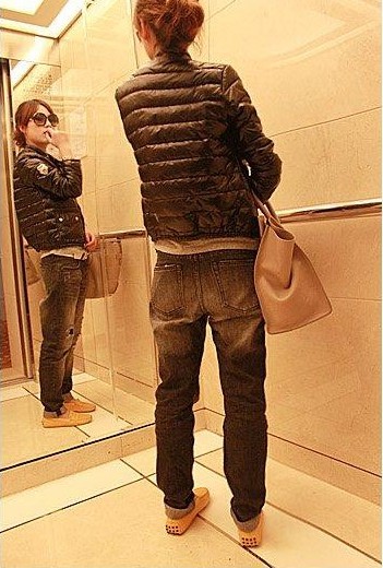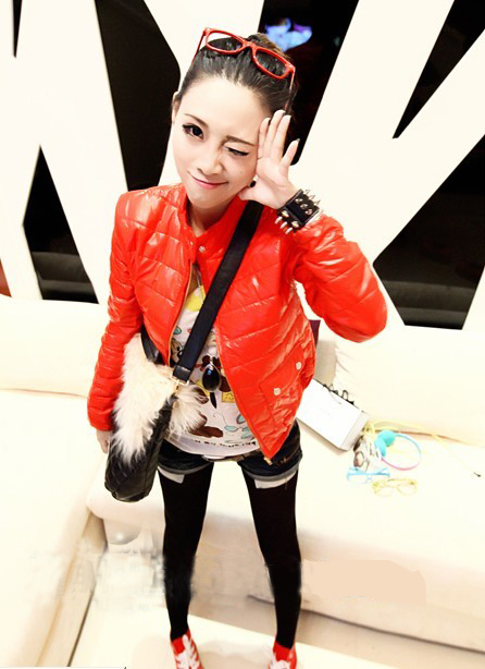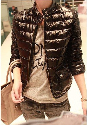 Amanda99 Slim and Fashionable Mix Match Zipper Long Sleeves Cotton Coat For Women |