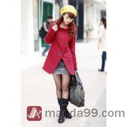 Amanda99 Specially Designed M Size Red Wool Long Sleeves Coat--Women's Coats |