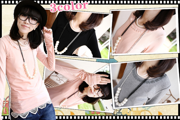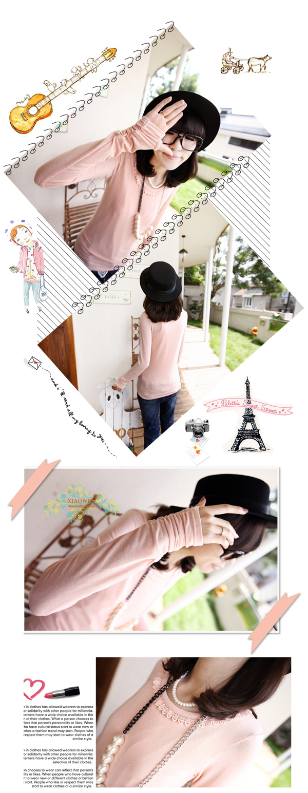 Amanda99 Sweety and Mix-Matched Stack Cuff Design and Lace Embellish Collar Blouse |