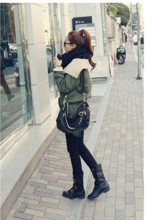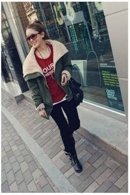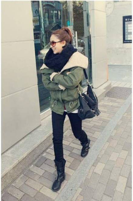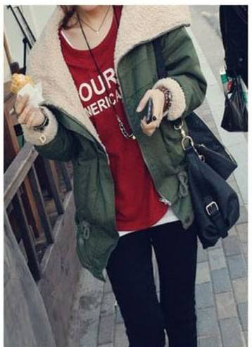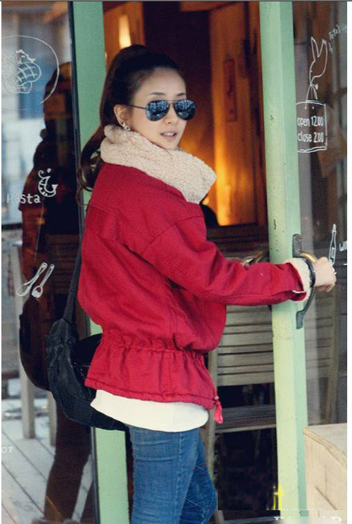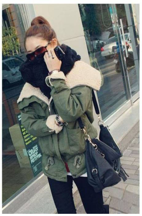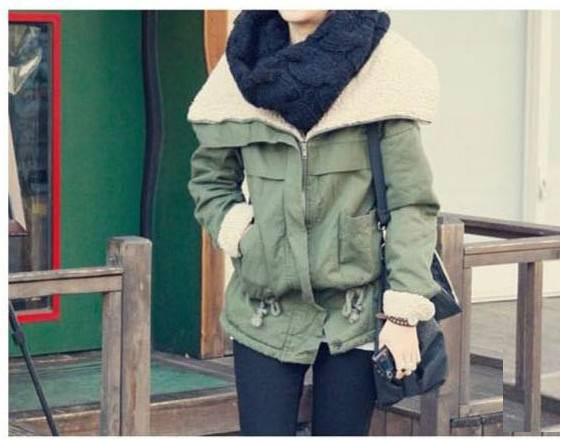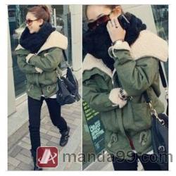 Amanda99 Top Quality Warm Winter Huge Collar Elastic Waist Cotton Padded Coat |