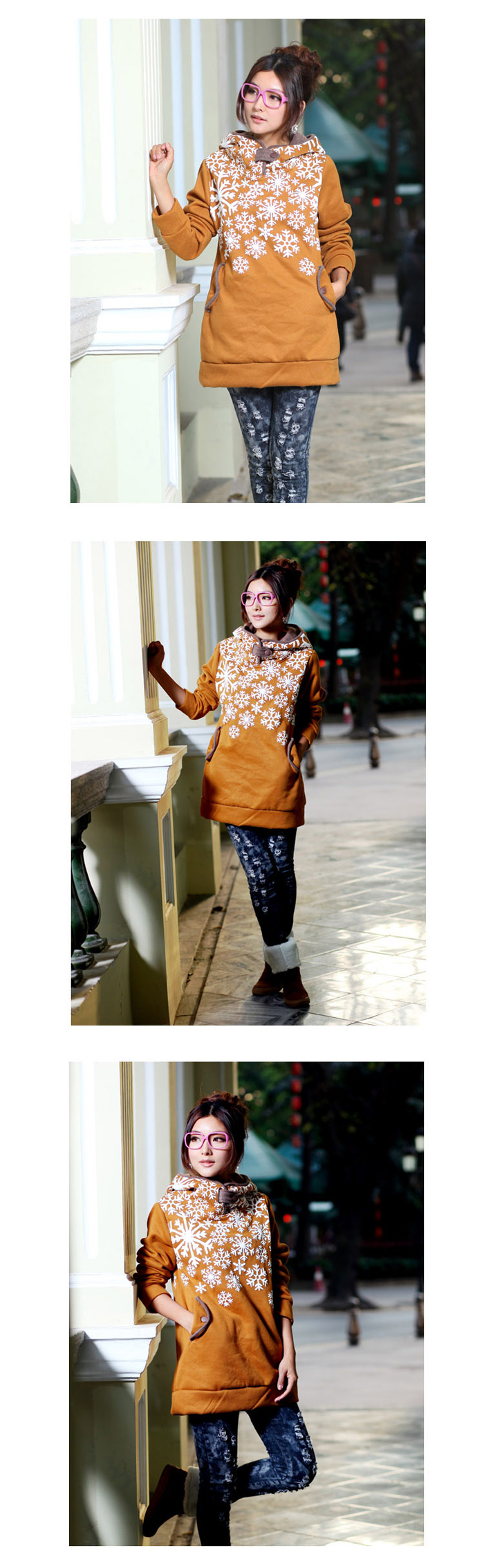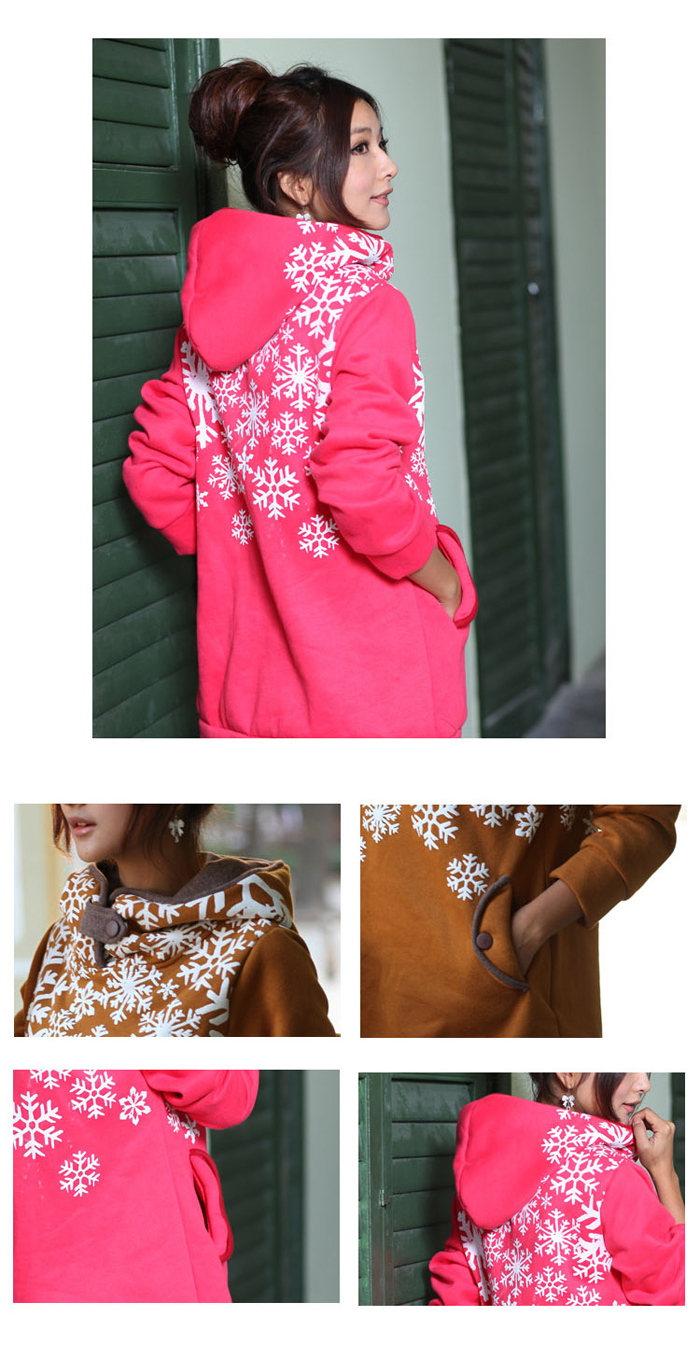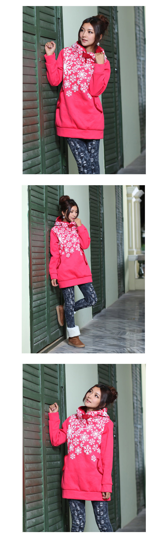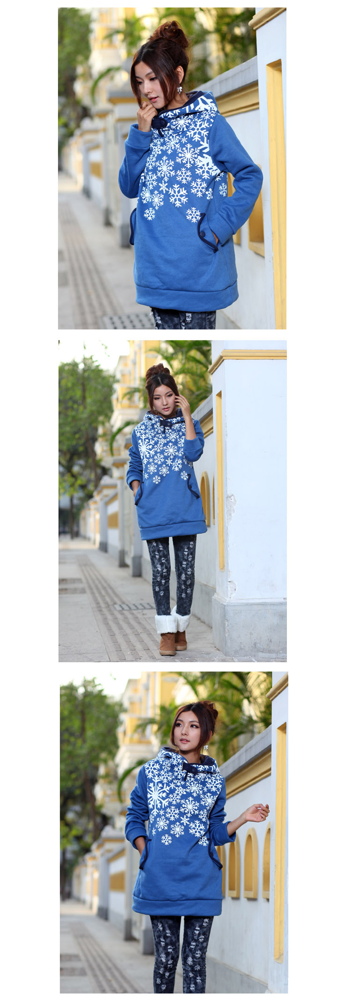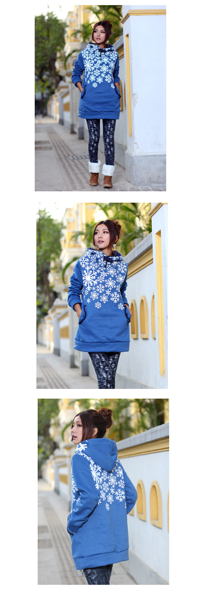 Amanda99 Warm Winter Beautiful and Irregular Snow Patterns Long Sleeve Hooded Sweater |