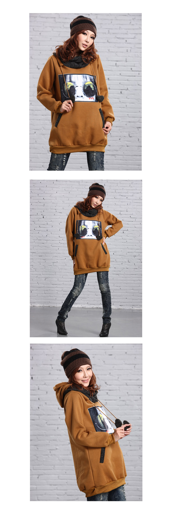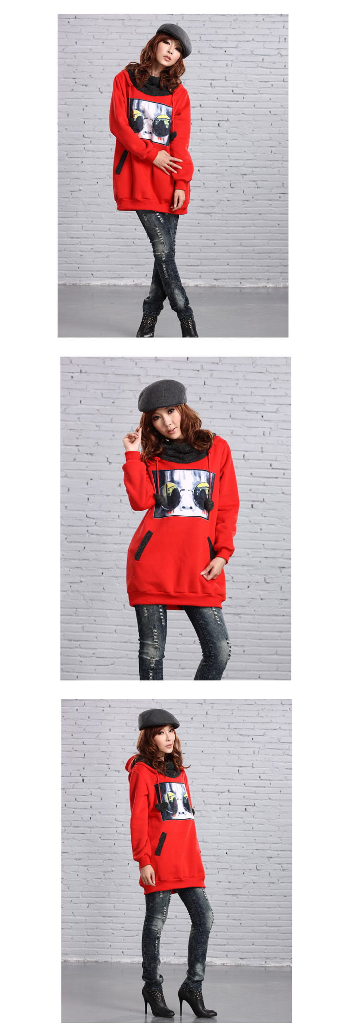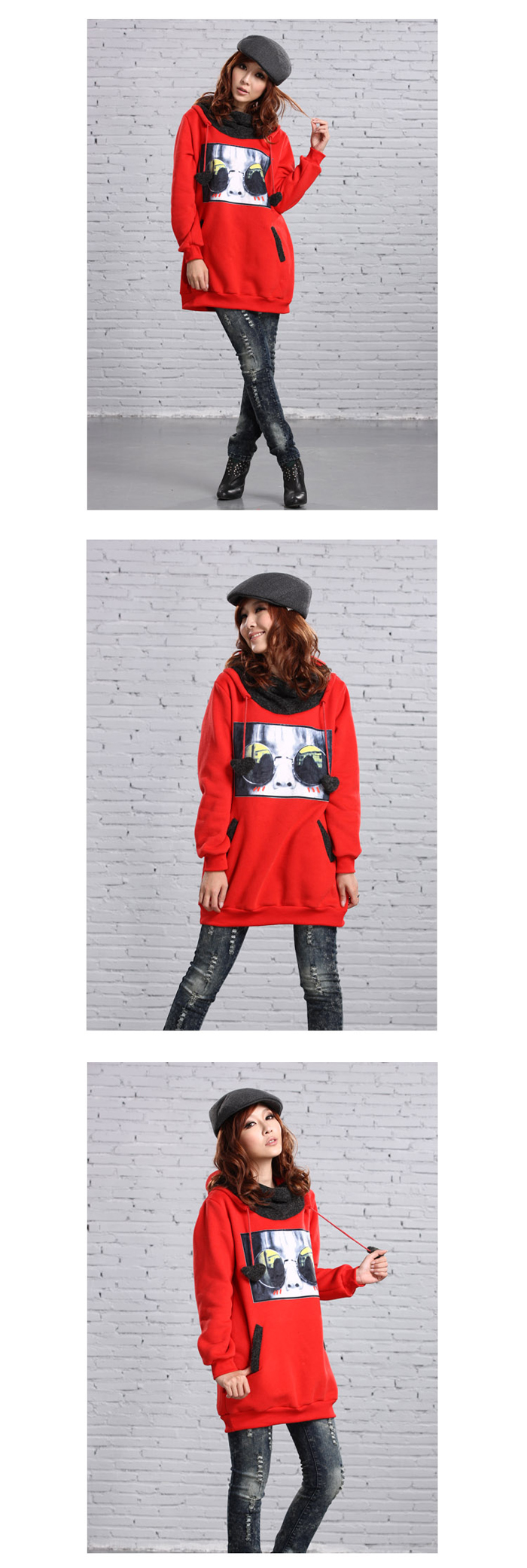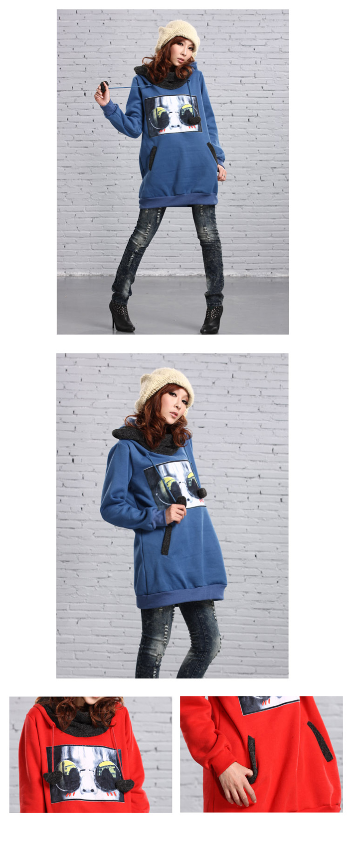 Amanda99 Warm Winter Glasses Girl Printing Heart Shape Ornaments Long Sleeve Hooded Sweater |