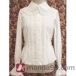 Amanda99 White Lace Long Sleeves Cotton Lolita Blouse |