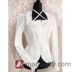 Amanda99 White Lace Long Sleeves Lolita Cotton Blouse |