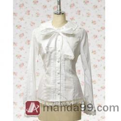 Amanda99 White Lace Long Sleeves Lolita Cotton Blouse |