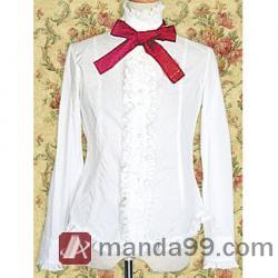 Amanda99 White Long Sleeves Bow Cotton Lolita Blouse |