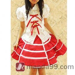 Amanda99 White Puff Short Sleeves Lolita Blouse And Red Lolita Skirt |